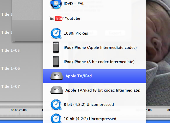 8. Select the Apple TV export preset. The Apple TV export preset is compatible with all of the modern iOS devices such as the iPad, iPhone 4 and the Apple TV.